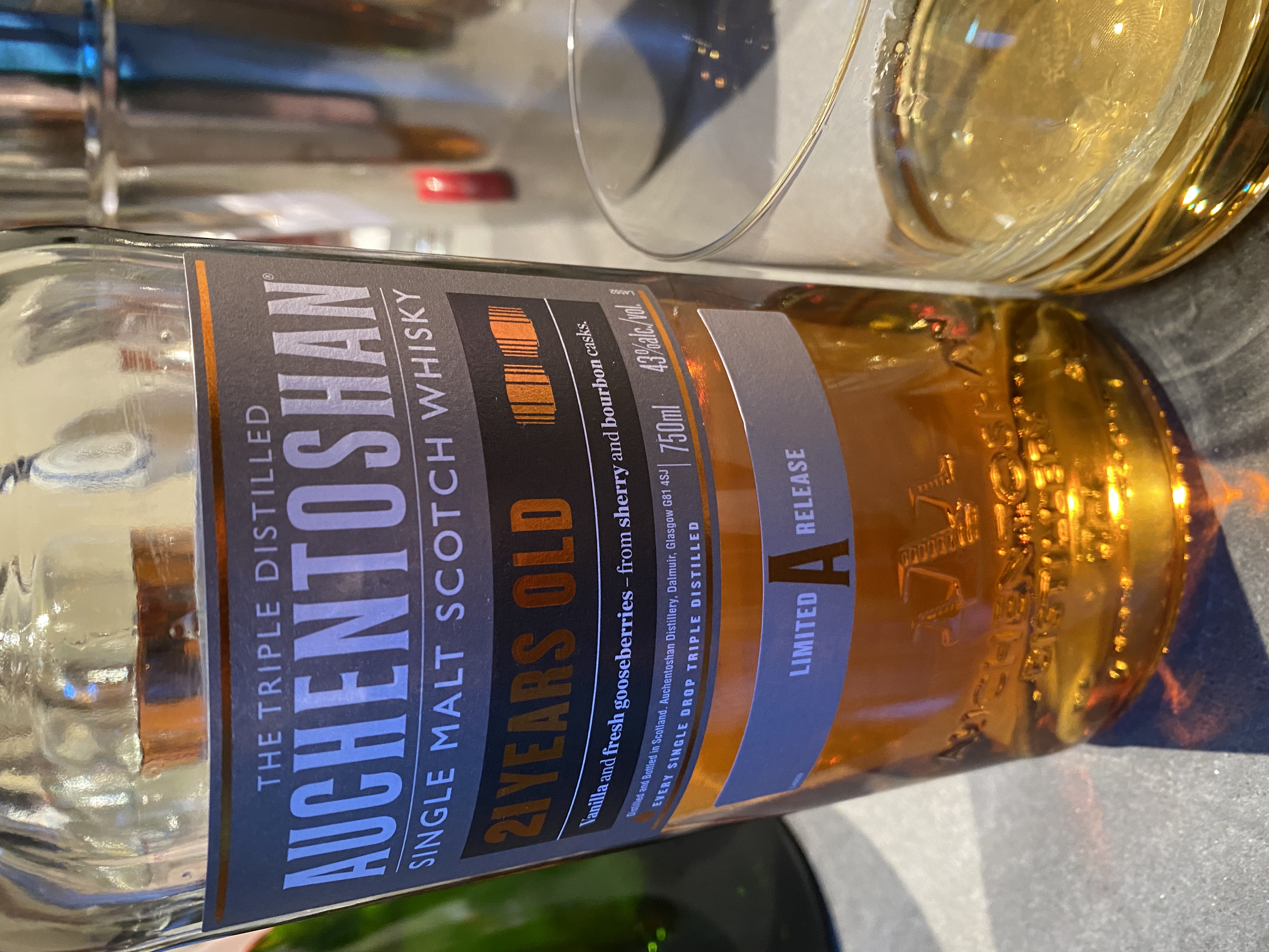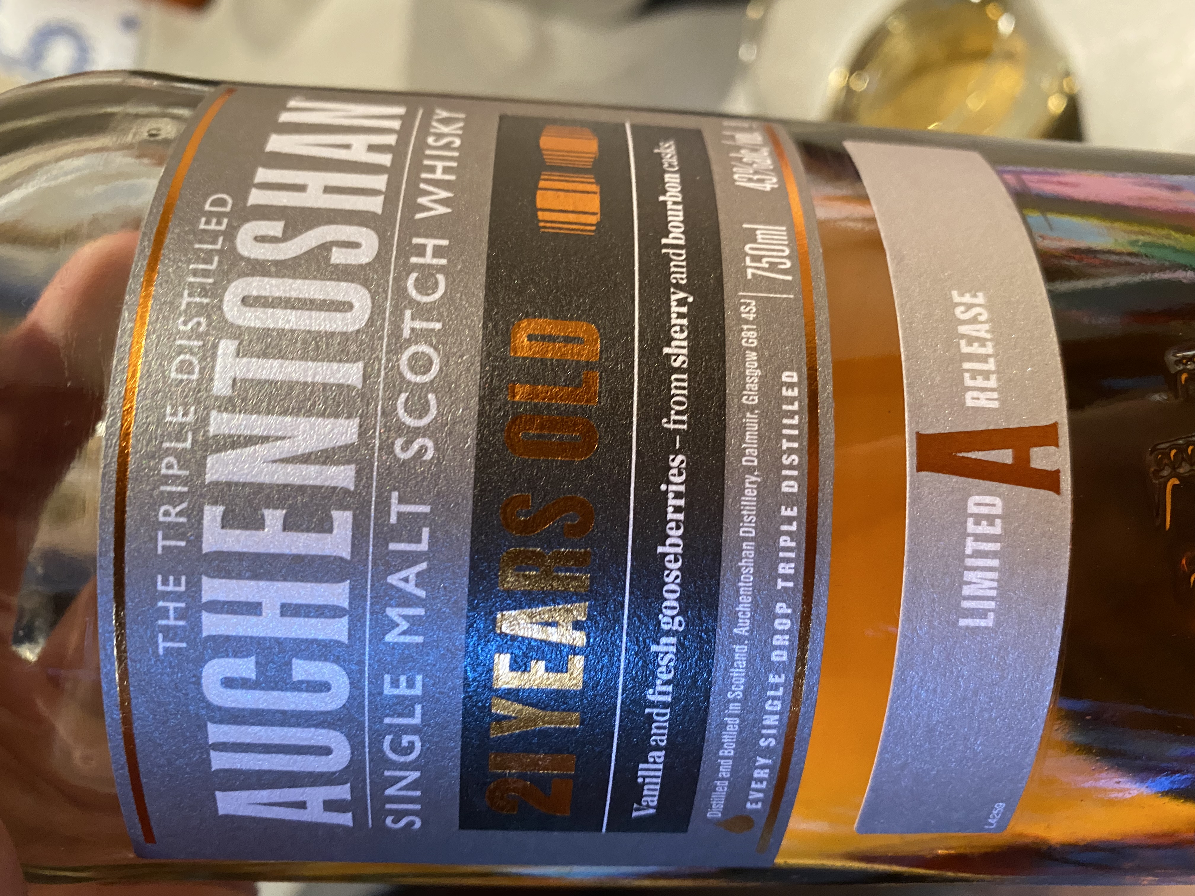 A 21 year old single malt, triple distilled and aged in second fill sherry casks, though nothing is lost to the power of the sherry. This bottling stands as the flagship for the core Auchentoshan range.