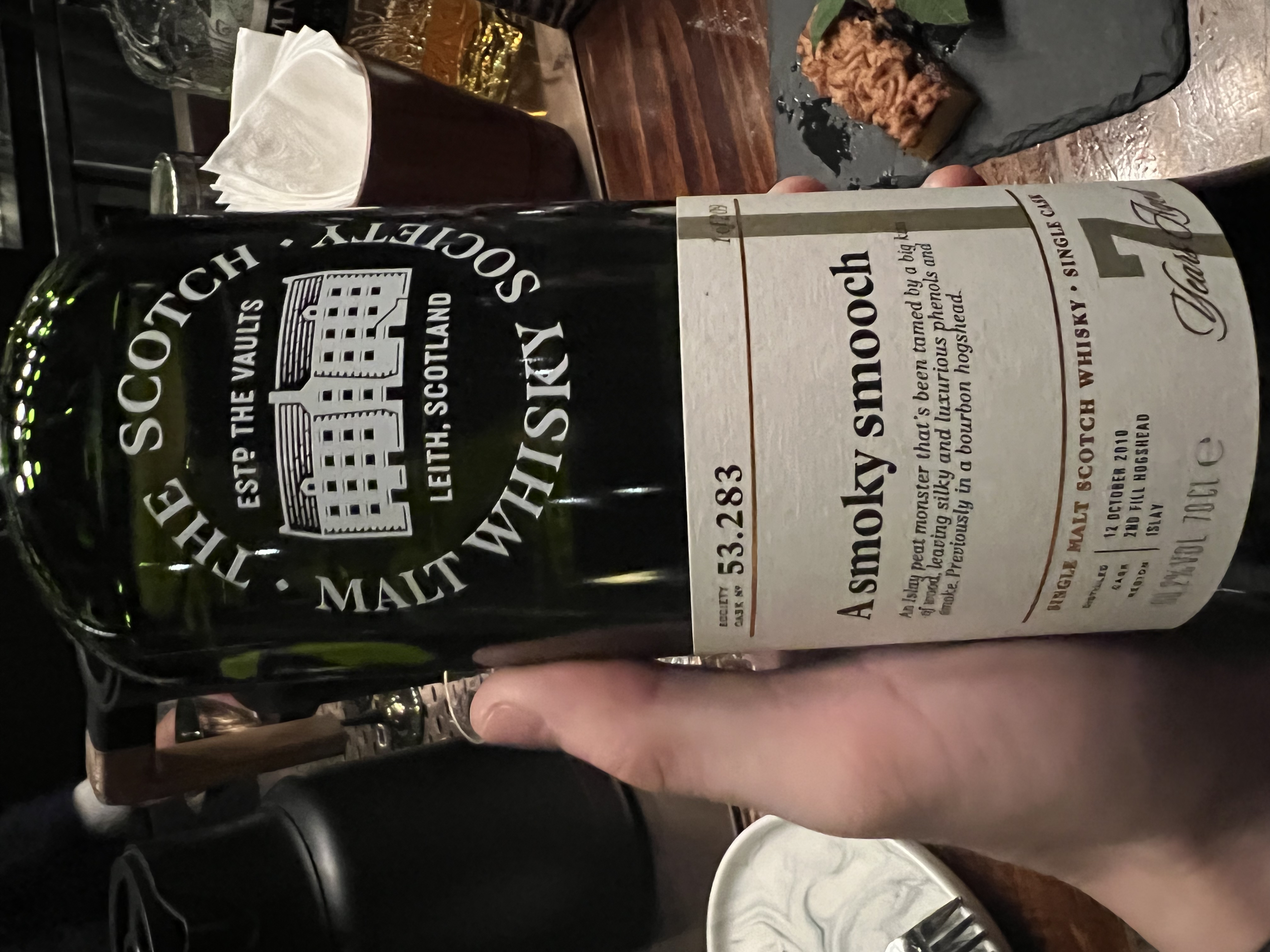 The nose begins unexpectedly with honey-roast root vegetables such as parsnip and neep. Then some dried sage. And eventually bigger, smokier ambitions are revealed. Carbolic soap, smoked grains, black olive bread, umami paste, oyster sauce and lemon oil. A wee peat fire squeaks in the corner. Reduction gives peated cereals, Dettol, assorted medicines and rollmop herring. The palate reveals a deep, yet silky peat smoke. Almost velvety in texture with notes of salted white fish, black pepper, BBQ sauce, dry earth and a briny lemon note at the back. With water there are green olives, chopped parsley, salted popcorn and smoked almonds. Transferred to a heavy toast medium char hogshead at six years of age.