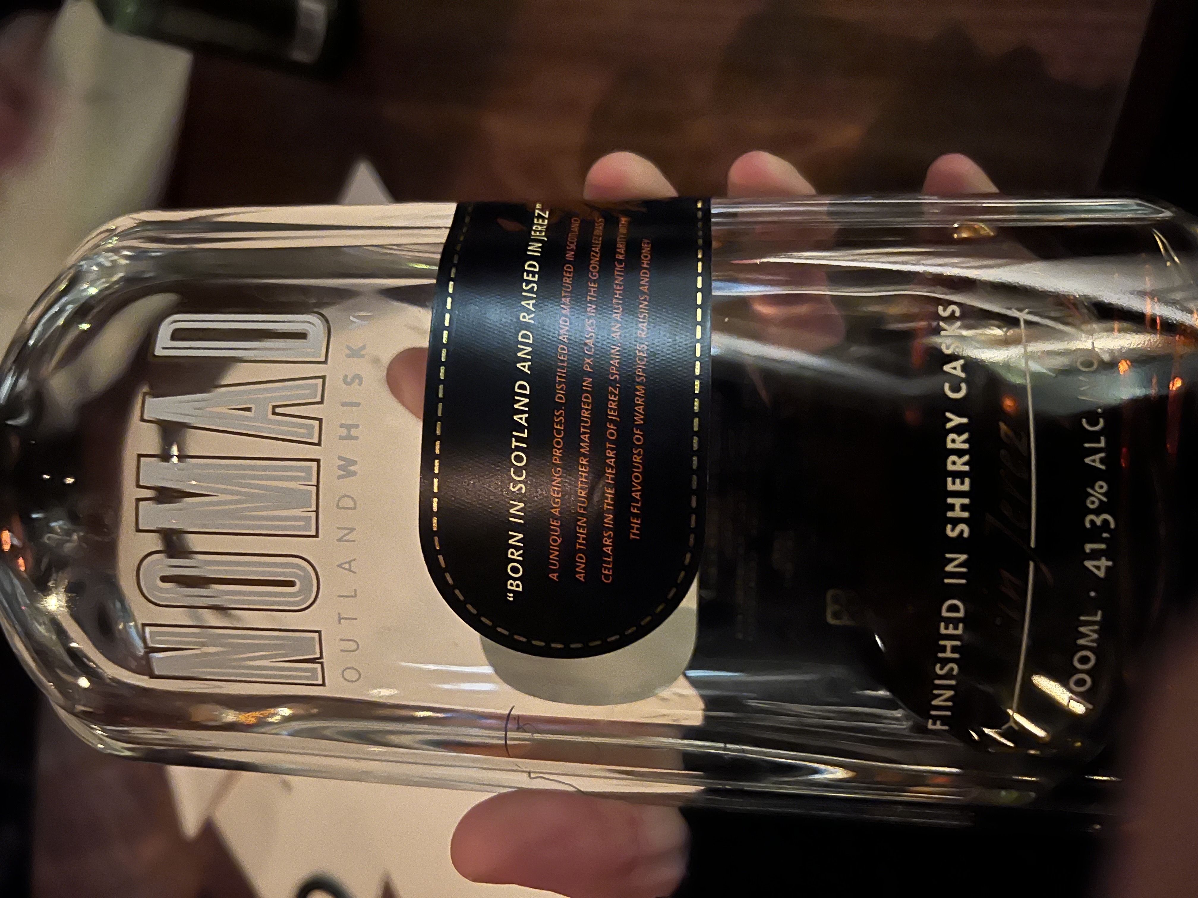 Nomad is a unique whisky. A collaboration between sherry producer González Byass and Whyte & Mackay master blender Richard Paterson. A blended Scotch whisky aged for more than five years in sherry butts is shipped to Jerez for further year's ageing in PX casks.